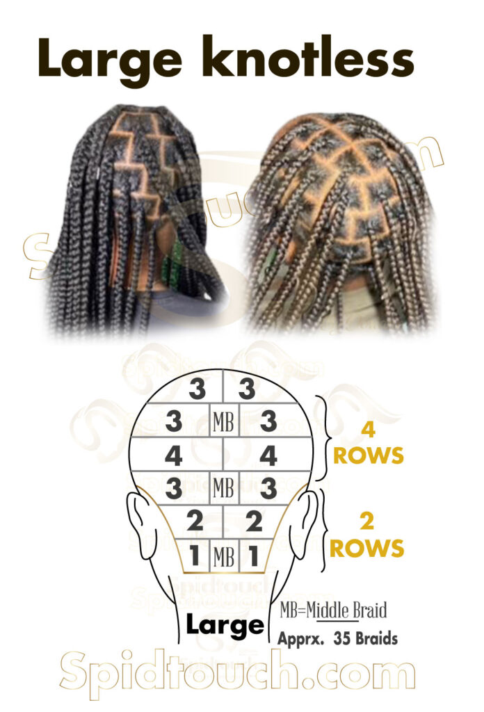 Protective hair style combining single knotless and twist.