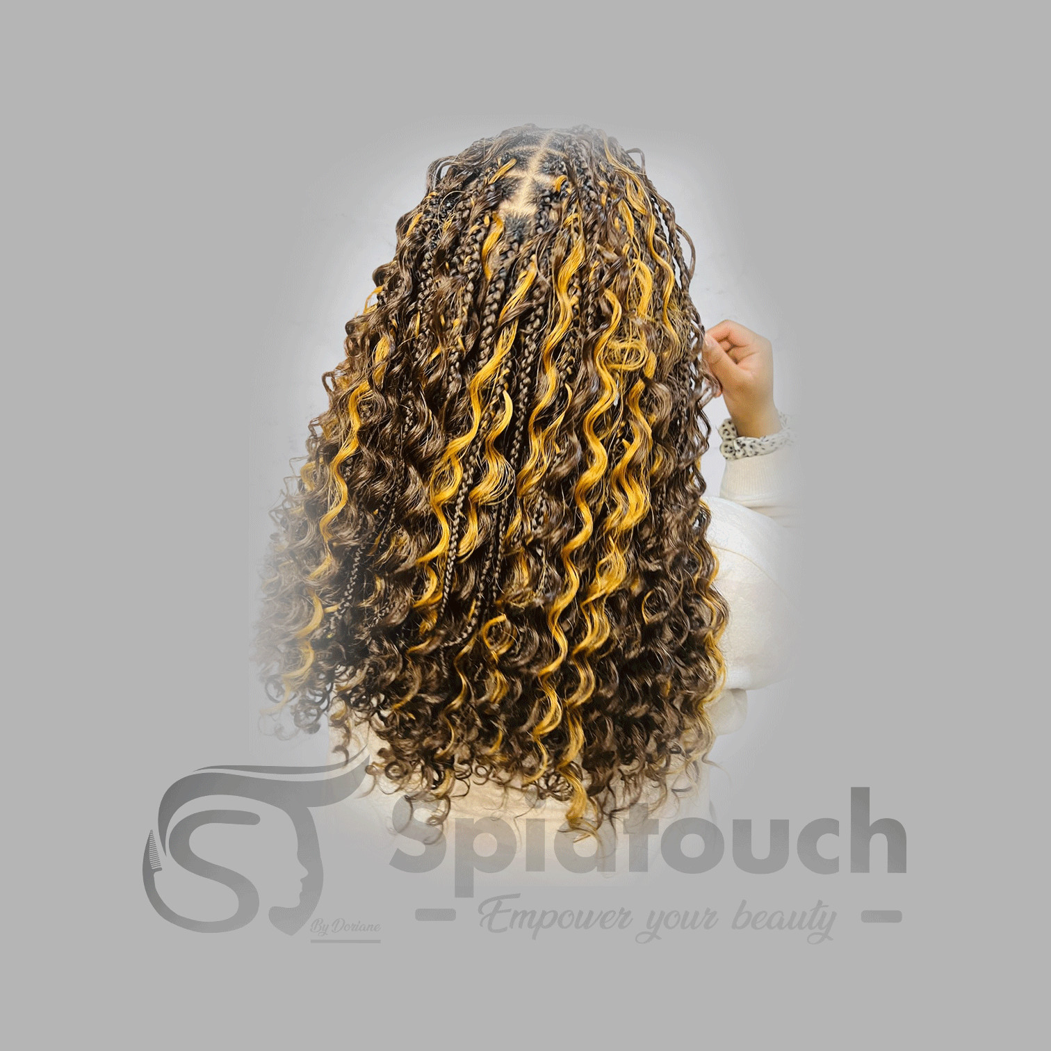Protective style where the hair is braided at the roots and finished with loose, silky, spiral curls at the ends.